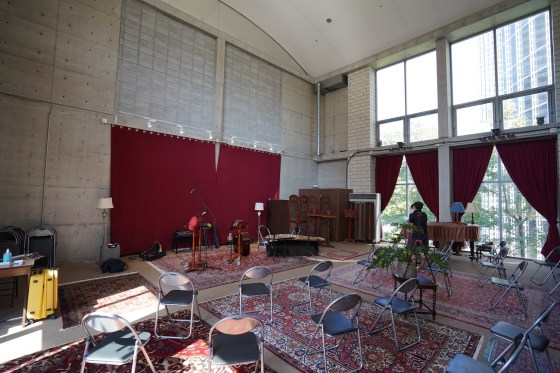 会場はすごく天井が高くてかなり響きました。天井から音が降ってくる感じ。昨日までの会場とはだいぶ様子が変わりましたがこの空間の雰囲気と響きを楽しみながら演奏できました。床の絨毯がいい感じ。