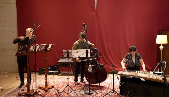 これまでは即興演奏を中心に行ってきたこのトリオですが、今回のツアーでは、日本の歌、タンゴ、クラシック、オリジナル曲といったレパートリーを独自のアレンジで、即興演奏を交えながら演奏しました。