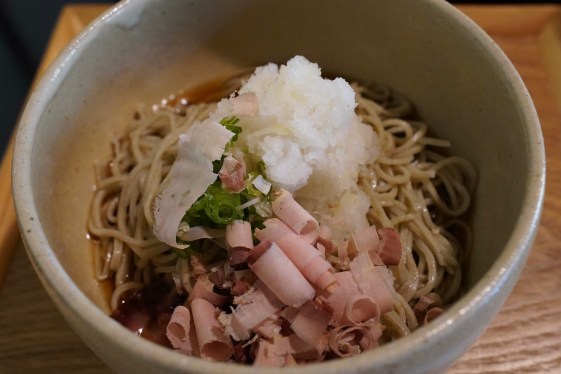 おろしそば。香りの良いそばに辛味大根、そして削りたての鰹節!3人で分けたくるみそばも香ばしく濃厚な味で大変おいしかったです!